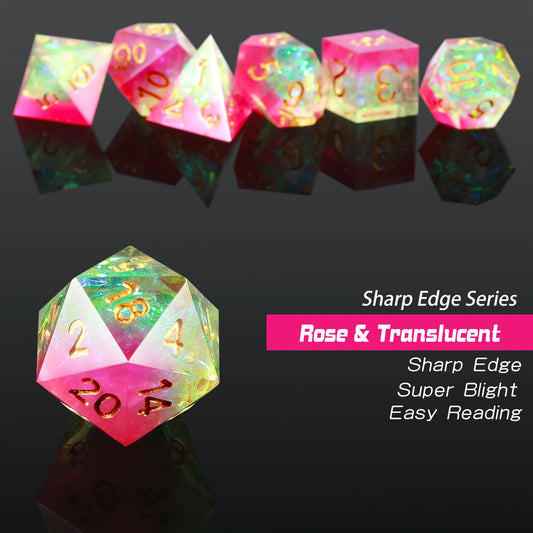 Sharp edge Dice Set - Rainbow Iridescent White Liquid Core