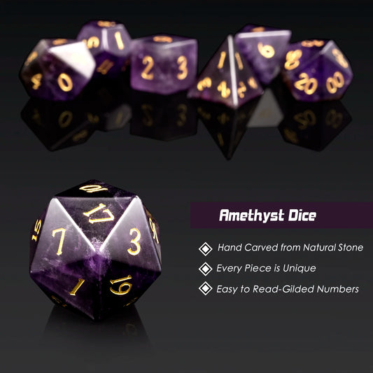 Gemstone Dice Set – Purple Crystal (Amethyst)