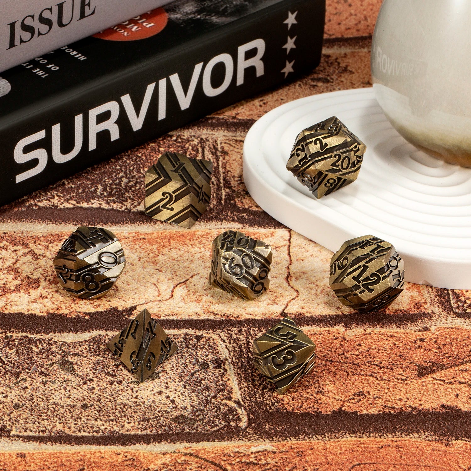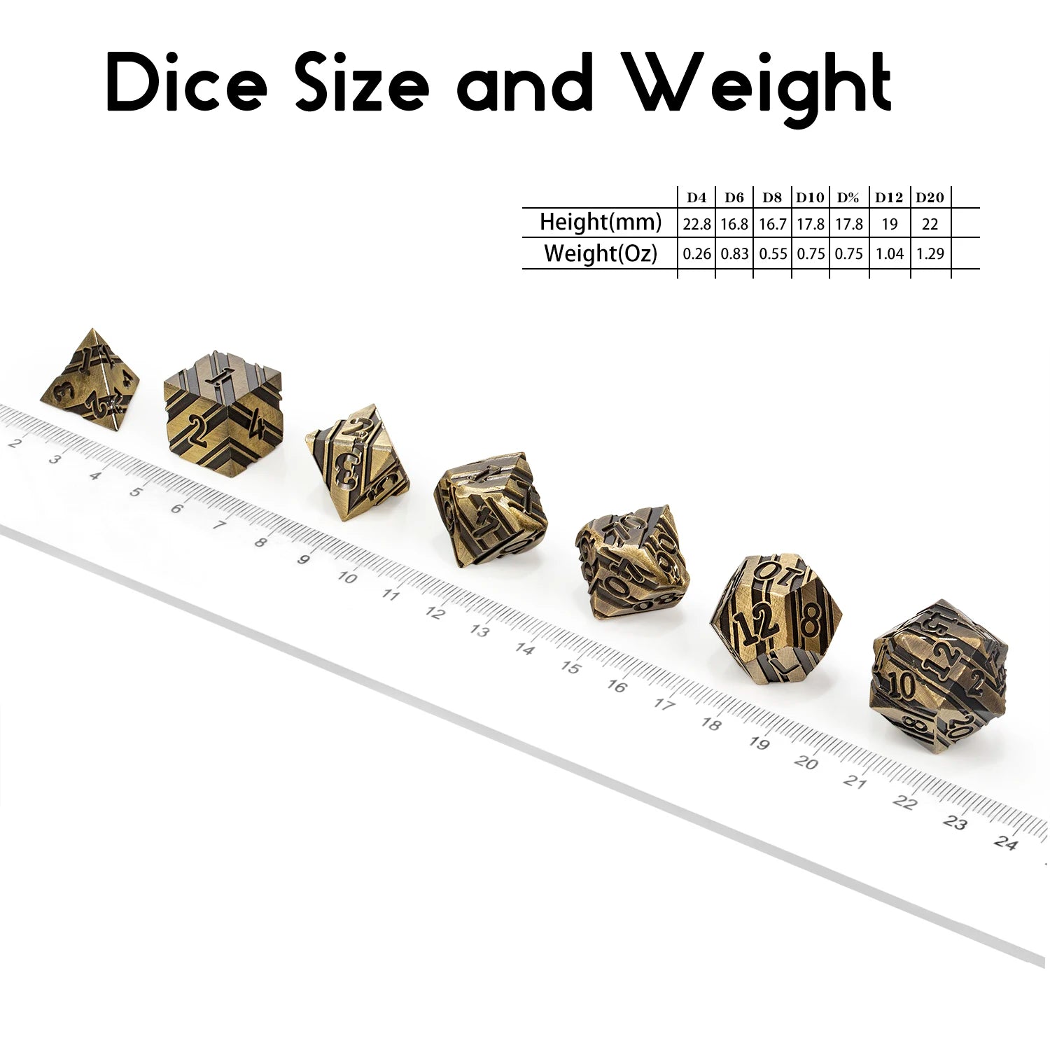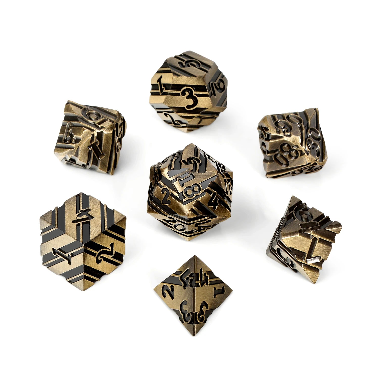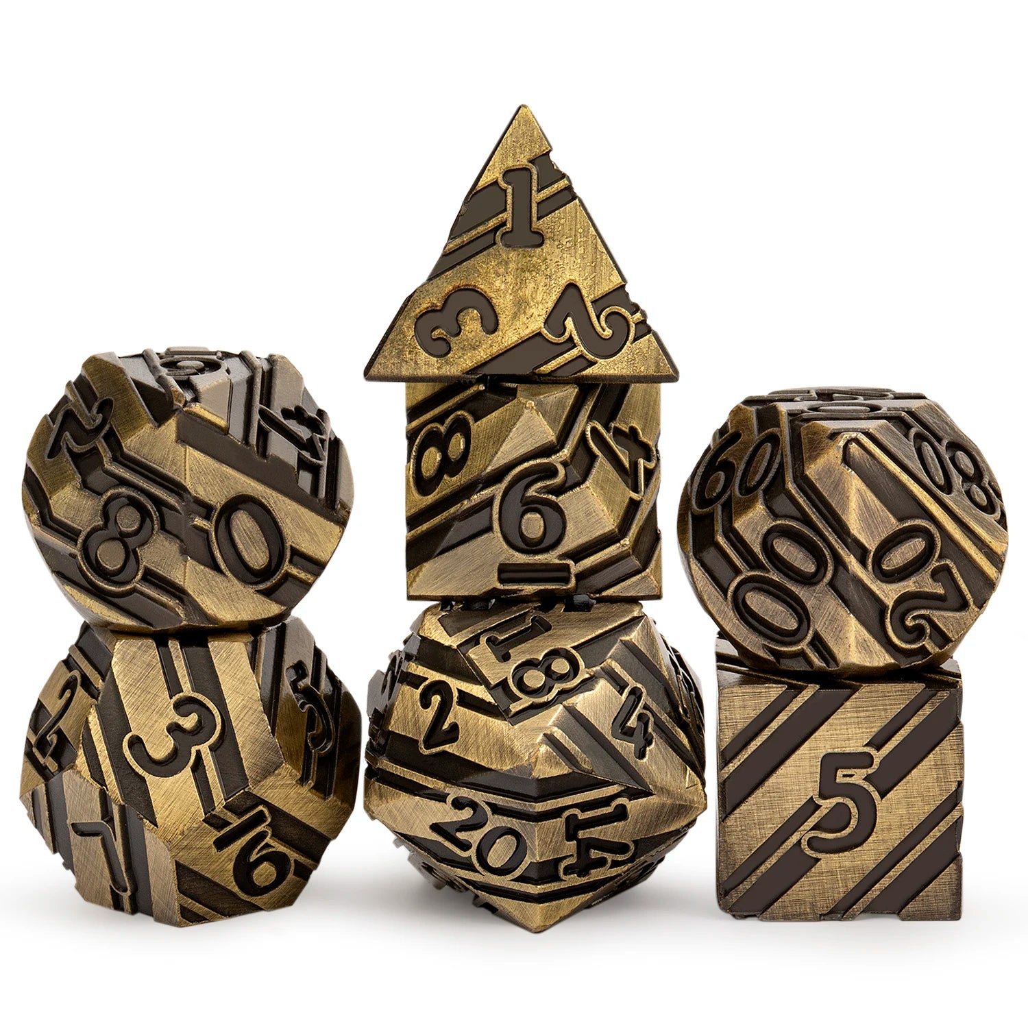 Upgrade your tabletop sessions with this Striped Metal DND Dice Set. Crafted from zinc alloy, this 7-piece polyhedral set includes D4, D6, D8, D10, D12, D20, and D% dice. Perfect for Dungeons & Dragons, RPGs, and collectors.