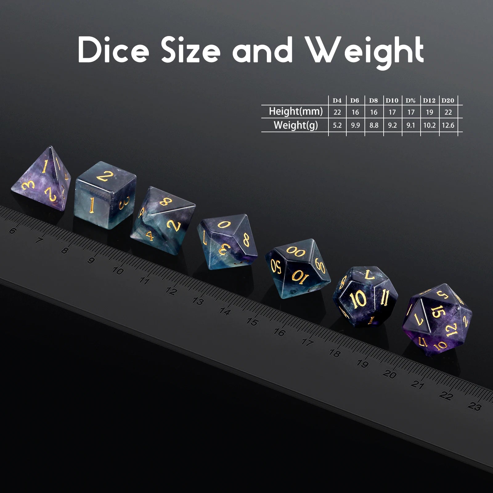 Enhance your tabletop adventures with the DND Gem Dice – Rainbow Fluorite, a 7-piece 16mm polyhedral dice set made from natural crystal and gemstone materials. Each die features a vibrant rainbow finish and can be custom engraved with your logo, making it ideal for Dungeons & Dragons, RPGs, collectors, or as a premium gift.