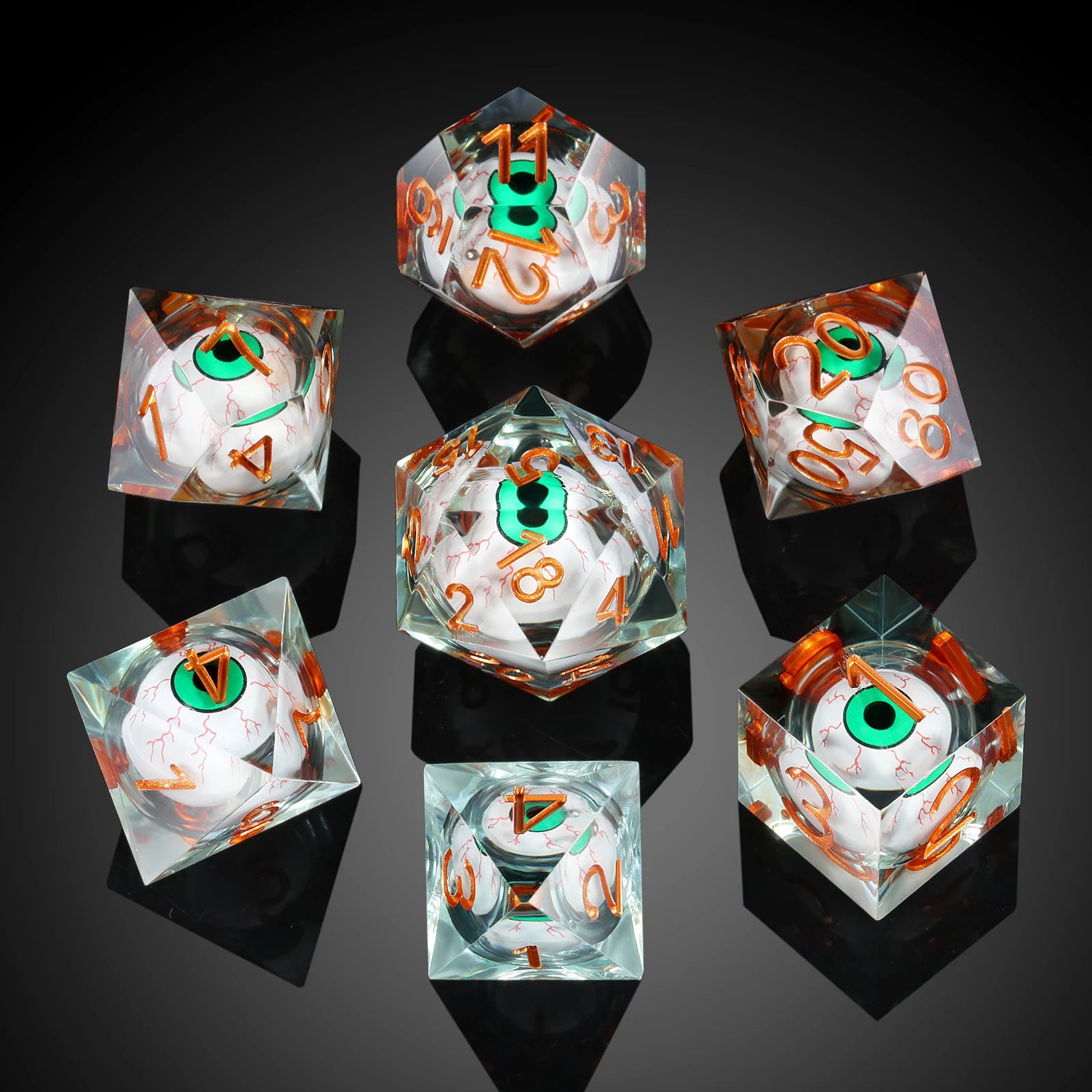 Sharp Edge Dice Set - Green Dragon Eye Liquid Core