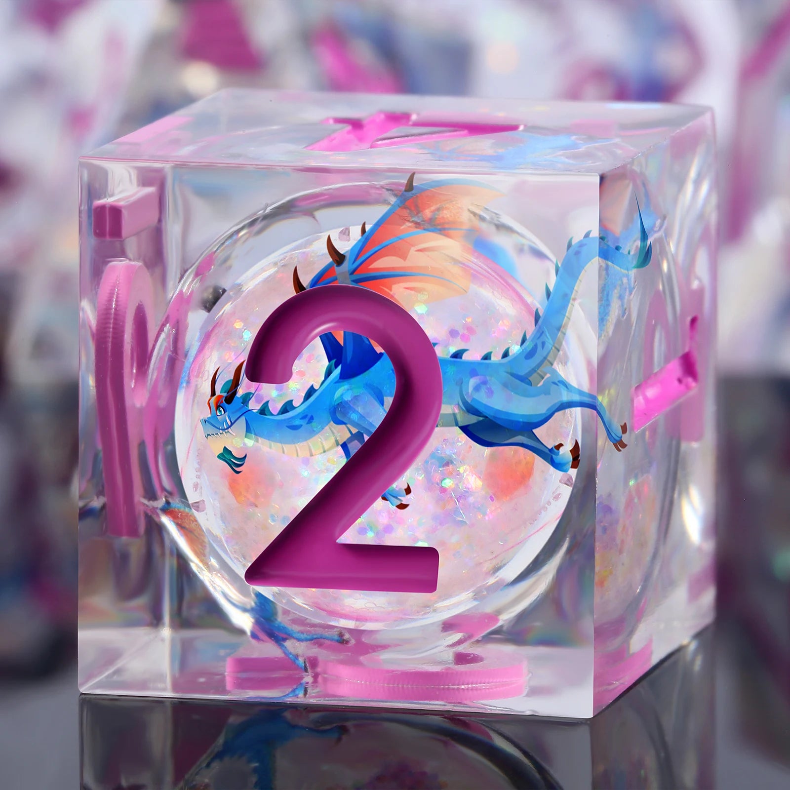 Sharp Edge Dice Set l Liquid Core with Pink ink