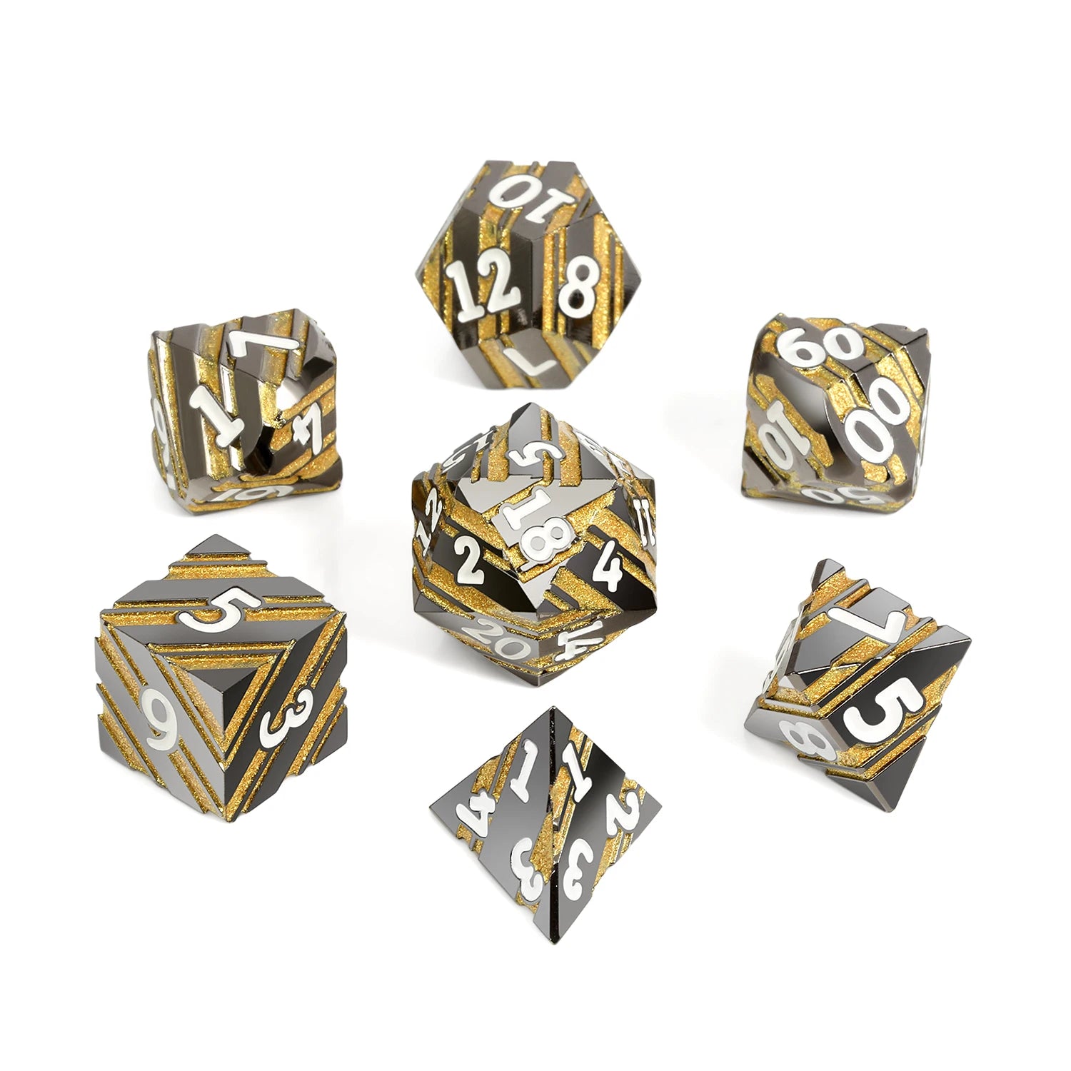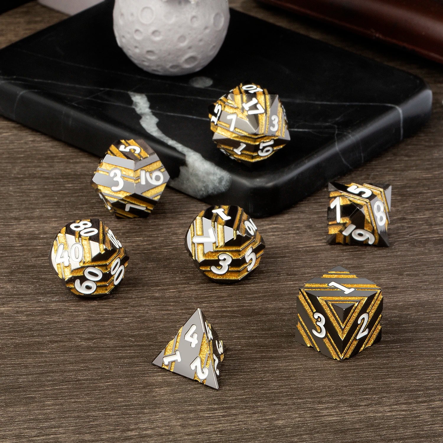 Enhance your tabletop games with this Custom Metal DND Dice Set. Made from durable zinc alloy, this 7-piece polyhedral set includes D4, D6, D8, D10, D12, D20, and D% dice. Perfect for Dungeons & Dragons, RPGs, and collectors