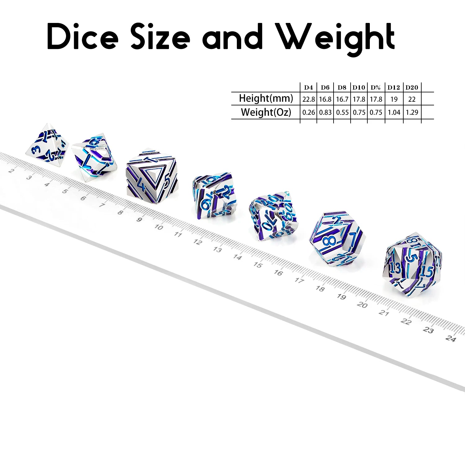 Upgrade your tabletop sessions with this Striped Metal DND Dice Set. Crafted from zinc alloy, this 7-piece polyhedral set includes D4, D6, D8, D10, D12, D20, and D% dice. Perfect for Dungeons & Dragons, RPGs, and collectors.