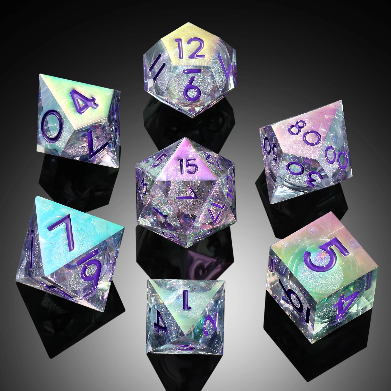 Sharp edge Dice Set - Rainbow Iridescent White Liquid Core