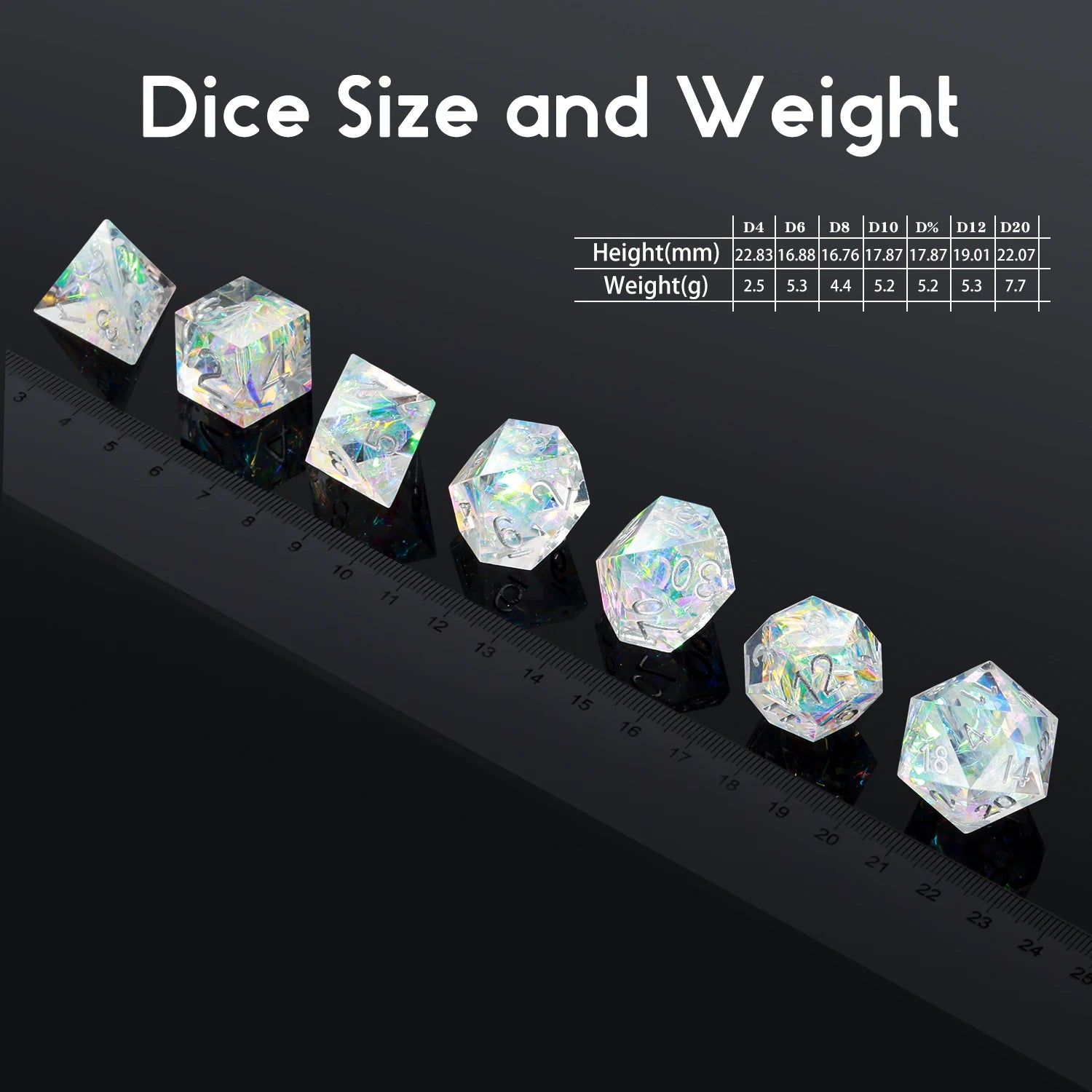 Elevate your tabletop gaming experience with this meticulously crafted 7-piece polyhedral dice collection. Each sharp-edged die—featuring D4, D6, D8, D10, D12, and D20 configurations—is hand-poured from premium transparent resin, measuring 19mm with a refined 36g weight. Designed for discerning dungeon masters and RPG enthusiasts, this set delivers both aesthetic appeal and functional precision. Presented in an elegant metal case, it's an essential companion for your next campaign.