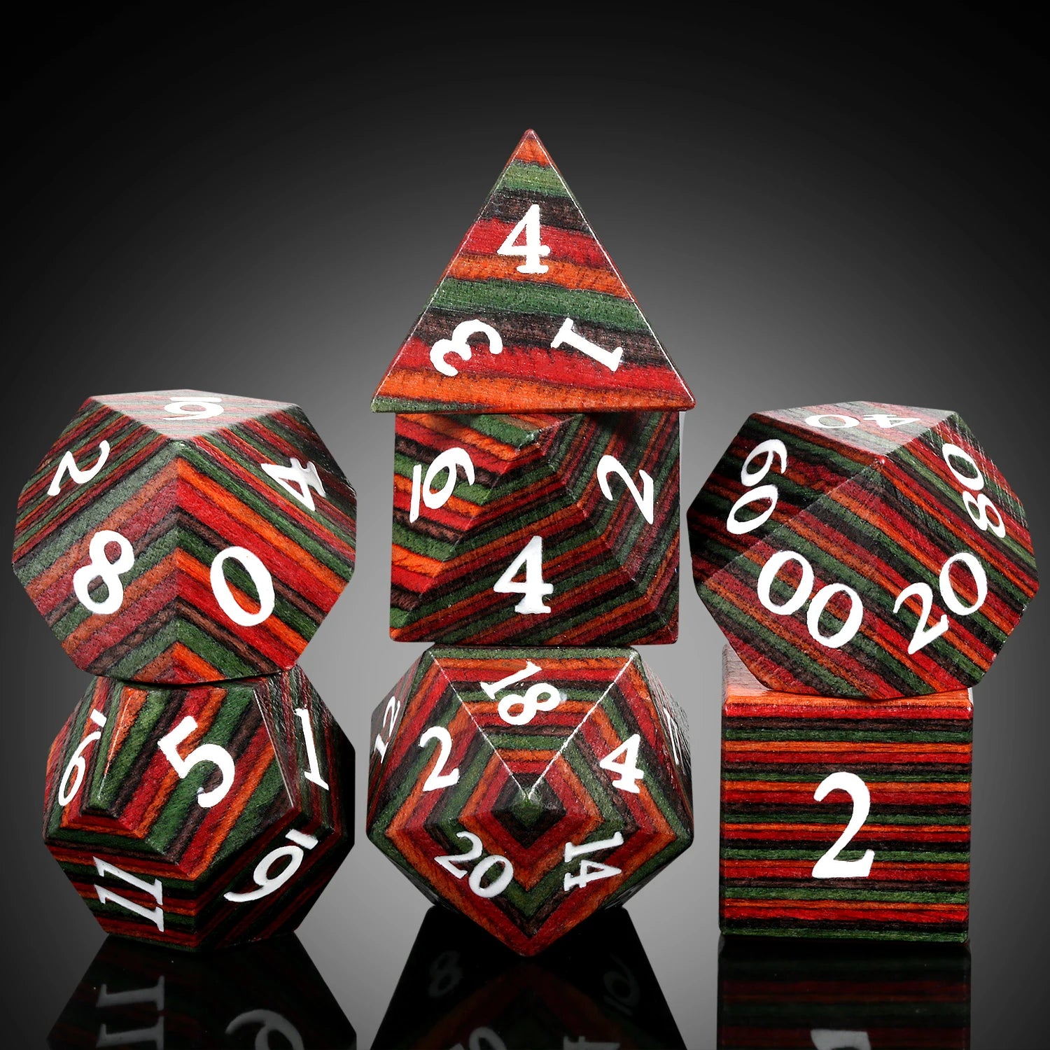Wood Dice Set | Red Green Streak